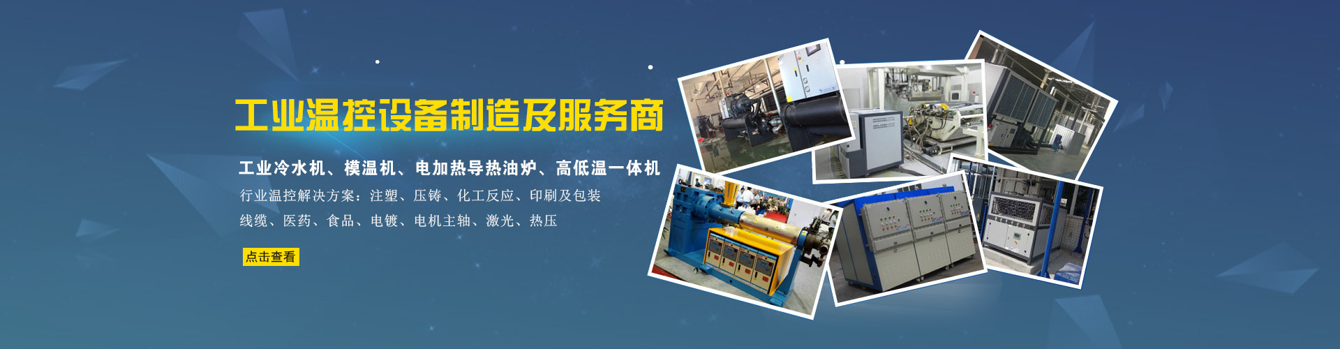 我們的產(chǎn)品主要包括:冷熱一體機、油循環(huán)溫度控制機、水循環(huán)溫度控制機、工業(yè)冷水機、冷油機、螺桿式冷水機、熱泵機組、蒸發(fā)式冷凝機組。針對不同行業(yè)的專業(yè)溫度控制需求,公司還研發(fā)出了行業(yè)專用溫控設備,如變速箱檢測專用冷熱一體機、橡塑專用水溫機、壓鑄專用油溫機、防爆模溫機、液壓系統(tǒng)專用冷油機等。